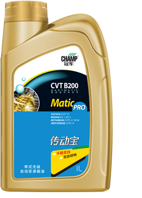 冠軍傳動(dòng)寶CVT B200是采用新型添加劑技術(shù)的酯類全合成CVT帶式無級(jí)變速箱油,可廣泛應(yīng)用于豐田、日產(chǎn)及國(guó)產(chǎn)小排量汽車鋼帶式無級(jí)變速箱中,能夠提供卓越的換擋操控性和節(jié)油性能。